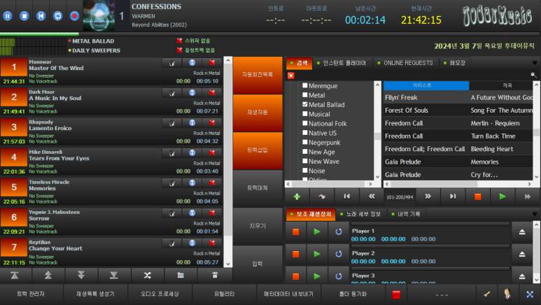 "전문 인터넷 방송 진행자들이 강력 추천하는 무료 자동화 방송 소프트웨어 라디오디제이가 2024년을 맞이하여 v2.0.4.5으로 업데이트하였습니다!" RadioDJ v2.0.4.5 (2024년 1월 25일) 변경 사항: - 마지막 릴리스 오류 수정 이전 버전에서 업데이트하는 경우 데이터베이스 수정이 필요하지 않습니다. 다운로드 페이지 RADIODJ 데이터베이스 수정 방법 다크 스타일 - 열목이 RadioDJ v2.0.4 .5 한글 패치 업데이트하여 올립니다. 트랙 회전 규칙 선택 모드 옵션 수정 첨부파일 RadioDJ__v2.0.4.5_Korean_Language.zip 파일 다운로드 RadioDJ v2.0.4.4 (2024년 1월 9일) 변경 사항: - 최신 버전의 MariaDB/MySQL에서 ..